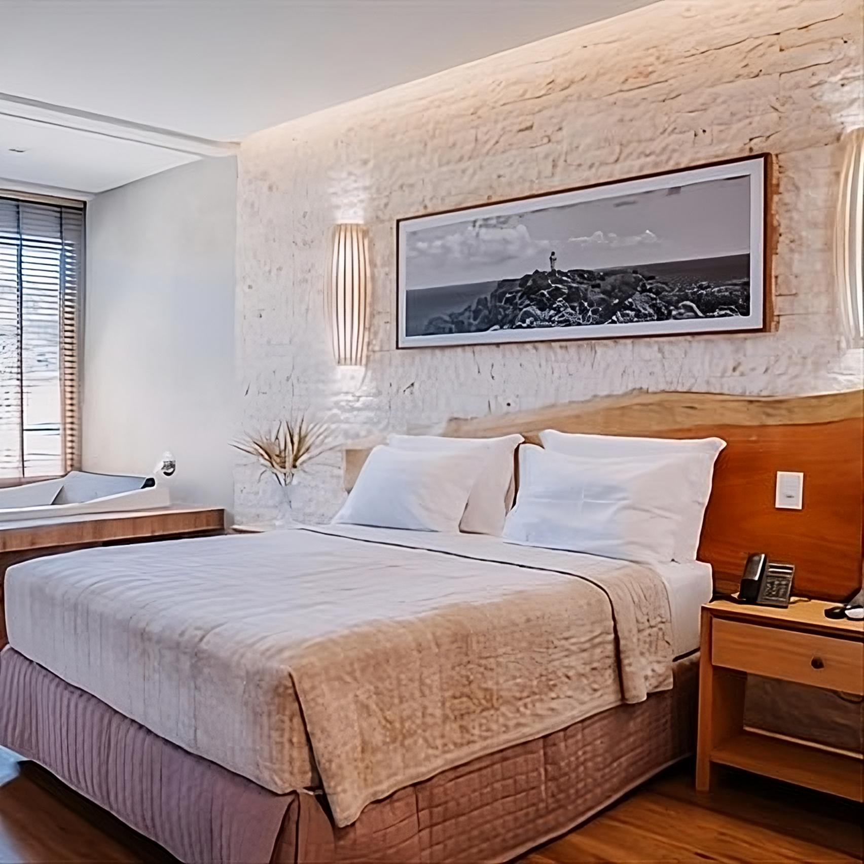 Inspirada na posição icônica de Marilyn Monroe na história de Hollywood e sua influência duradoura. A Suíte conta com uma confortável cama de casal Queen, espaço de organização e trabalho com armário, mesa, cadeira e cofre, uma relaxante banheira de hidromassagem, banheiro com ducha, pia com espelho, ar condicionado, TV, além de maravilhosa vista para nossa piscina de borda infinita e para o mar.